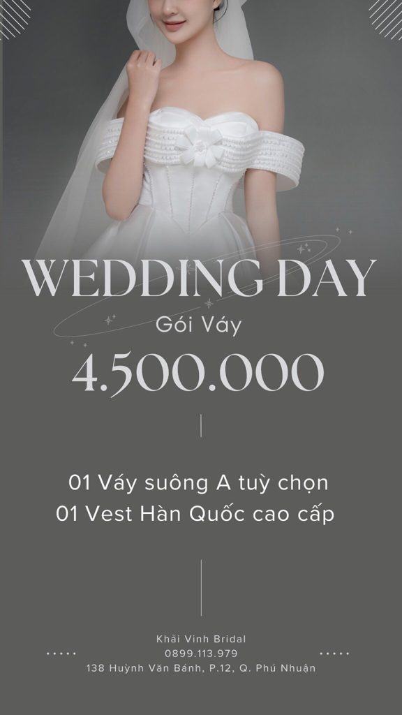 Gói váy chụp ảnh cưới tại Khải Vinh Bridal để các cặp đôi có thể tham khảo để có kế hoạch ngân sách ảnh cưới