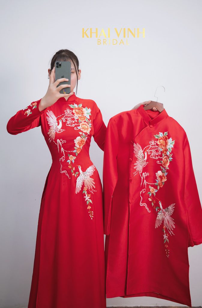 Các mẫu áo dài cặp mới nhất và đẹp nhất cho đám hỏi – Màu đỏ phối hợp với các họa tiết Trong những năm