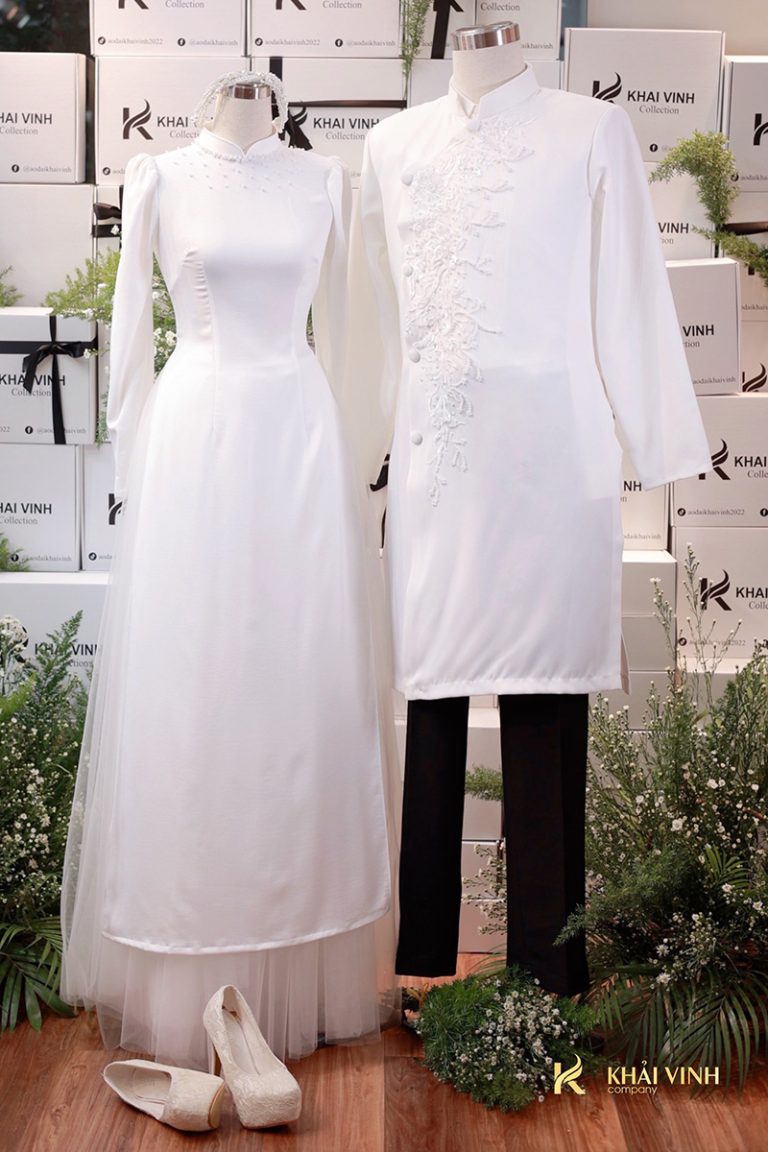 Khải Vinh Bridal thiết kế áo dài cặp thể hiện tình yêu và sự đồng điệu giữa hai người trong đám cưới. Điều đó tạo nên một hình ảnh thật đẹp nắt và ấn tượng. Bên cạnh đó, áo dài cưới này giúp cho các cặp đôi cảm thấy tự tin đẹp nhất trong ngày cưới.