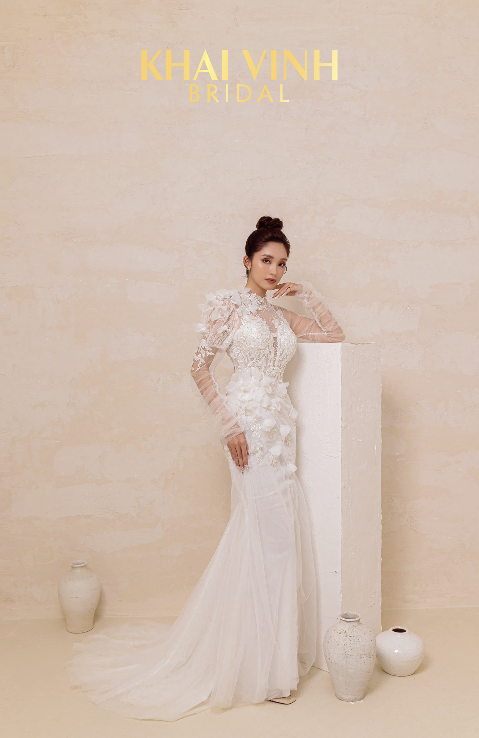 Váy cưới đuôi cá voan với thiết kế hoa 3D thêu nổi nữ tính, hiện đại. Là một trong những thiết kế đặc biệt mà Khải Vinh Bridal mang đến xu hướng mới cho nàng dâu 2023. Đội ngũ thiết kế – may – rập khuân nhà Khải Vinh luôn cập nhật những xu hướng – công nghệ may mới hơn trong tương lai. Hãy cùng Khải Vinh đón chờ Bộ sưu tập nhé!