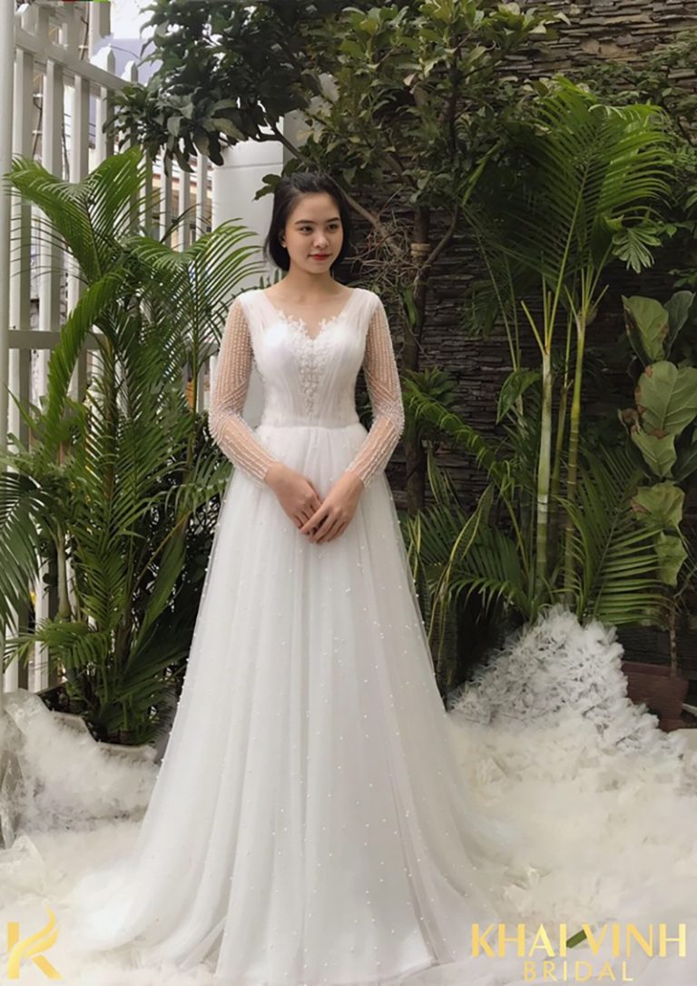 Váy cưới chữ A dáng suông tay dài