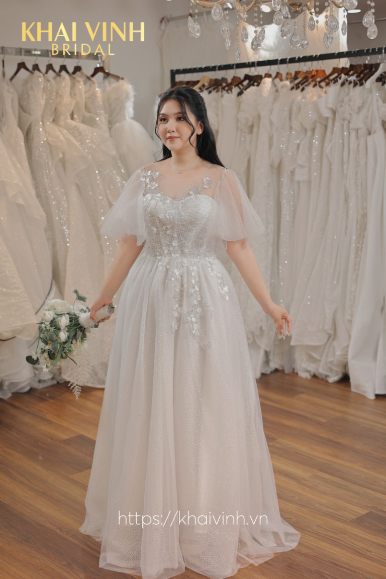 Váy cưới chữ A Big size tay cánh tiên nhẹ nhàng