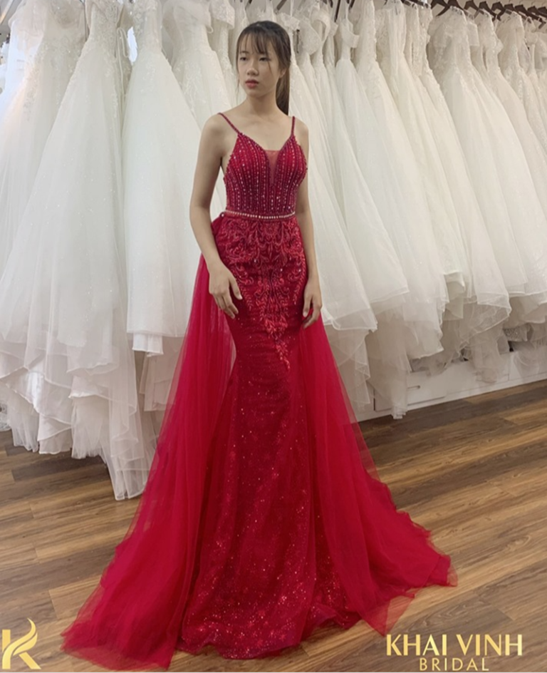 Váy cưới đi bàn Big size màu đỏ tôn da