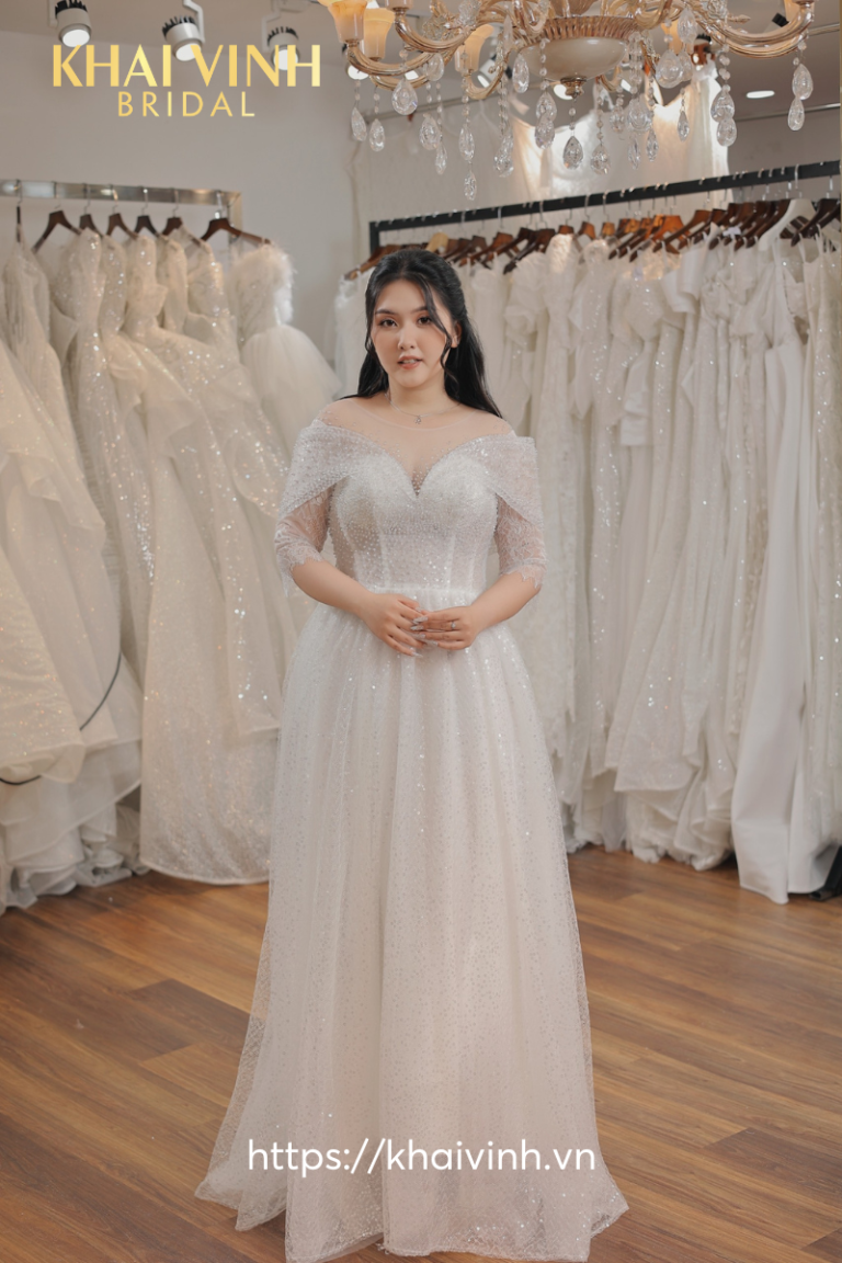 Váy cưới dáng suông không cổ – Kim Tuyến lấp lánh