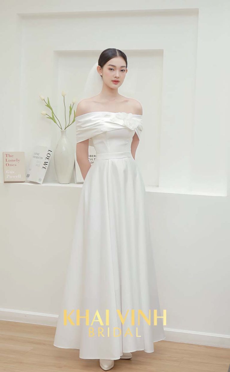 Áo cưới Hàn Quốc dáng suông, hở vai