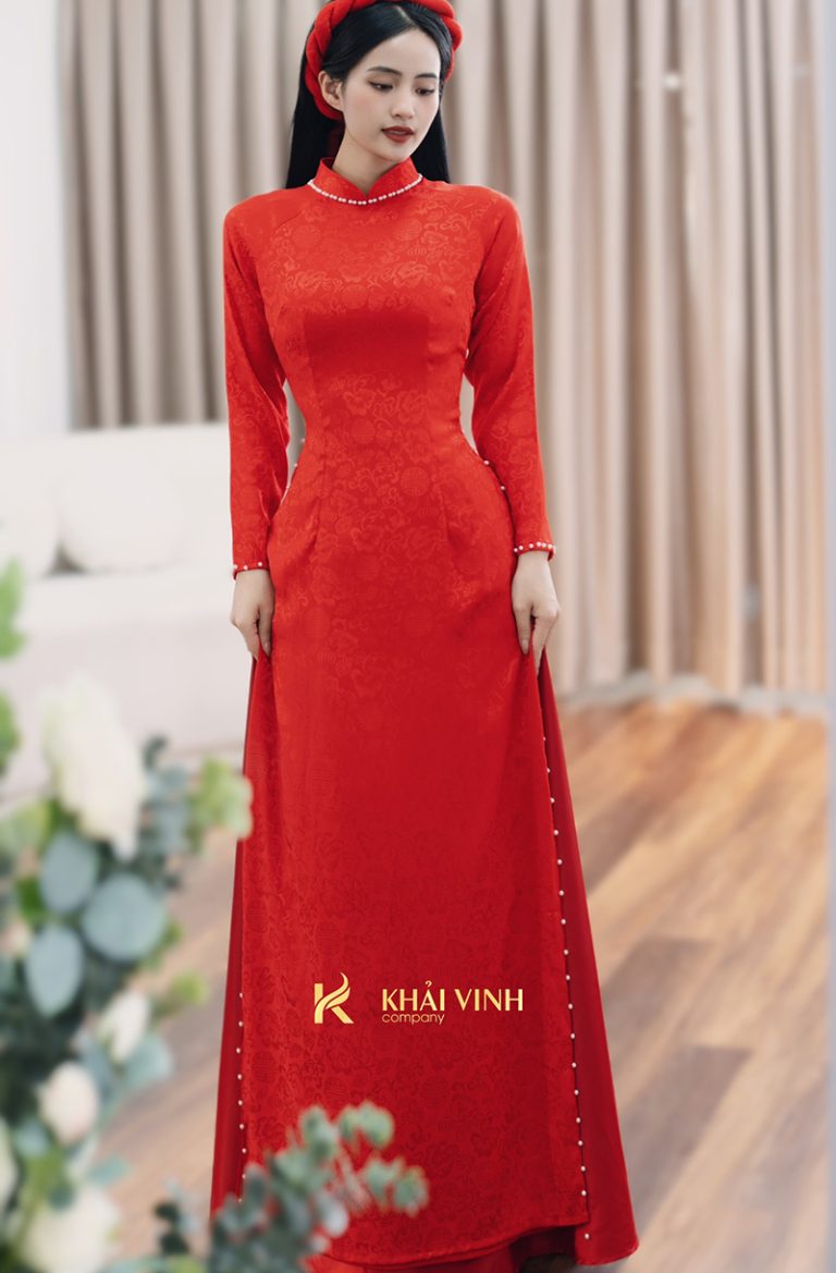 Áo dài cô dâu ngày cưới màu đỏ cực xinh kiểu truyền thống