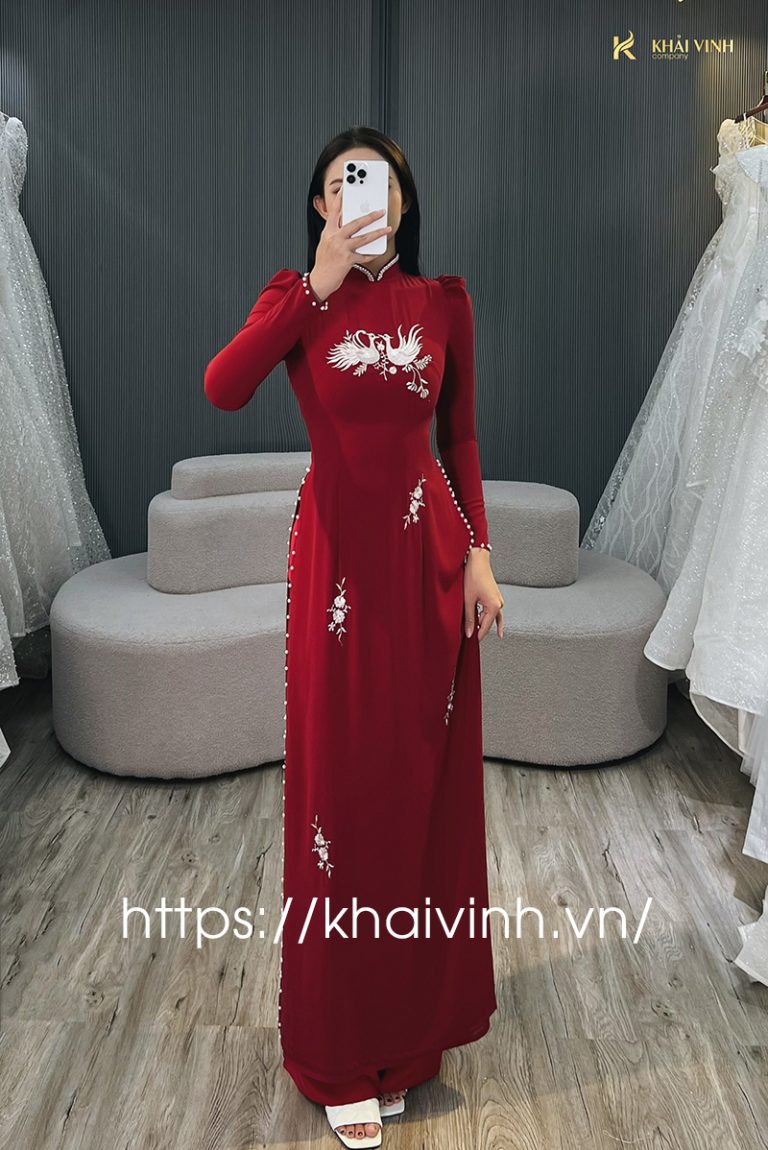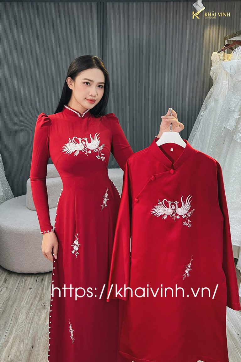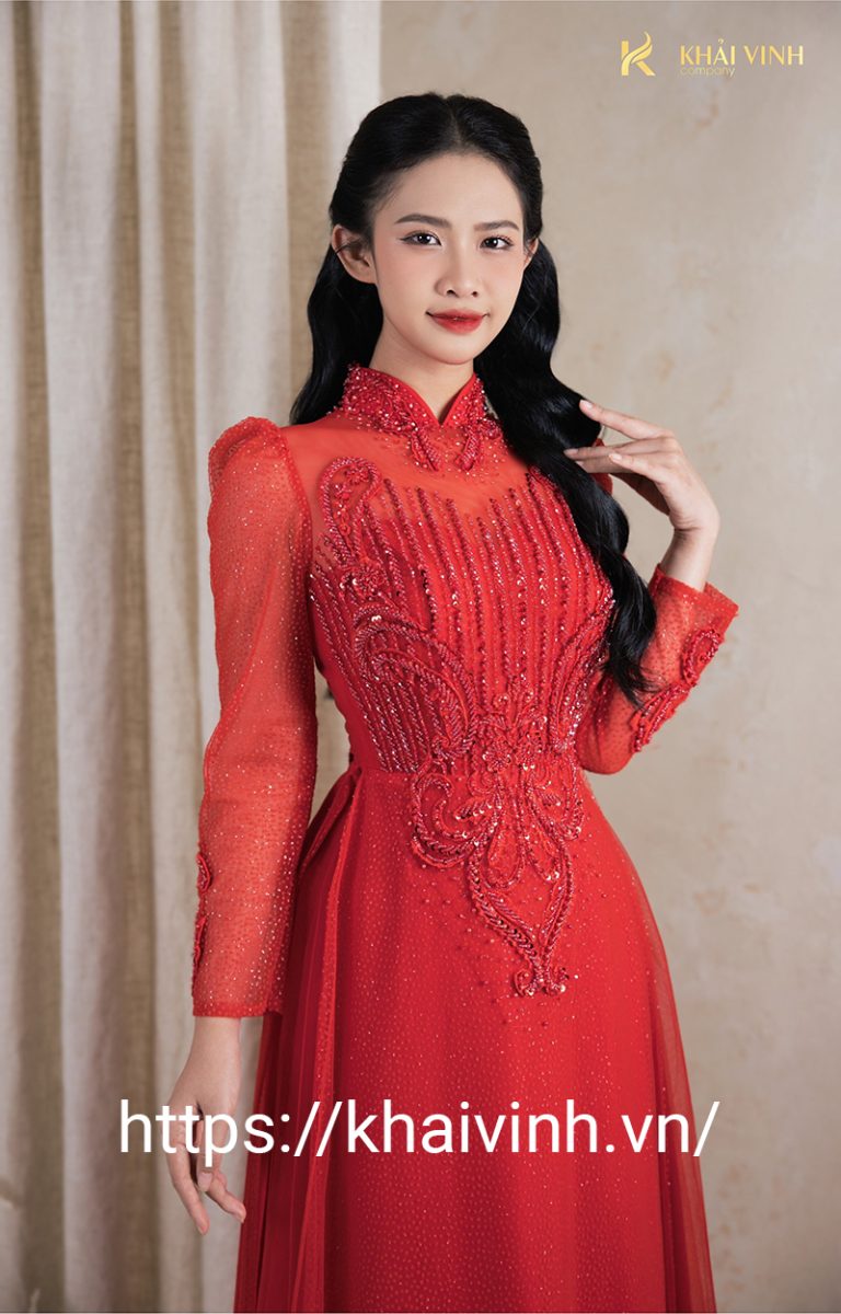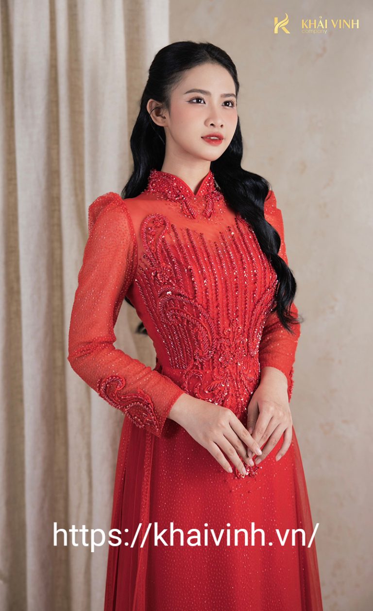 Áo dài cô dâu ngày cưới màu đỏ tươi thắm