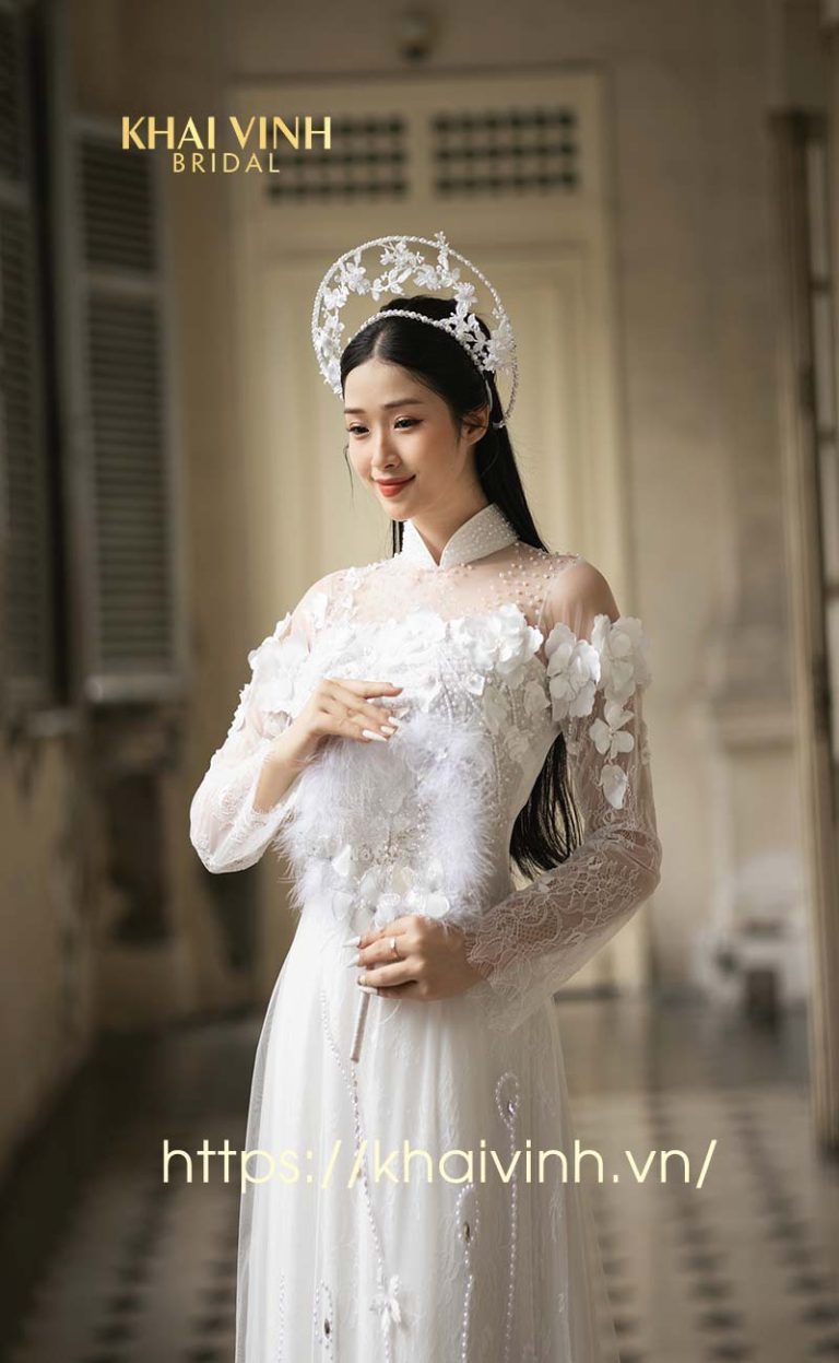 Áo dài cưới thiết kế màu trắng rất ấn tượng