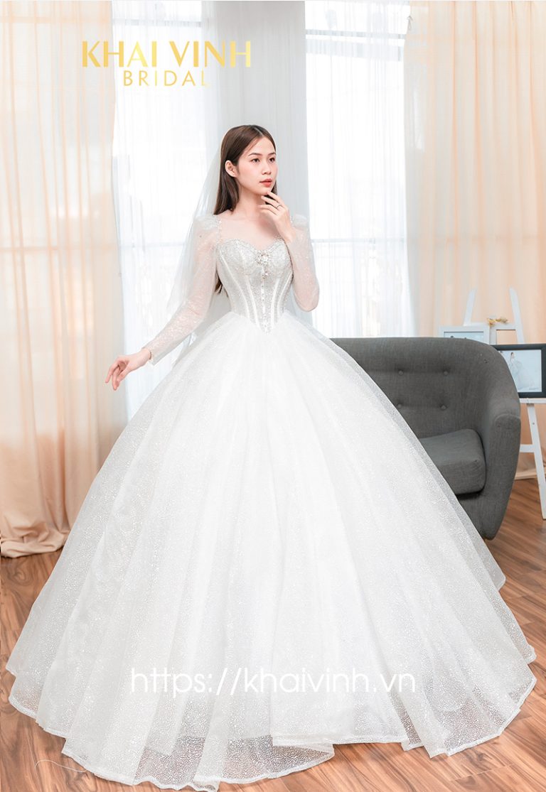 Áo cưới công chúa với đôi tay dài xuyên thấu