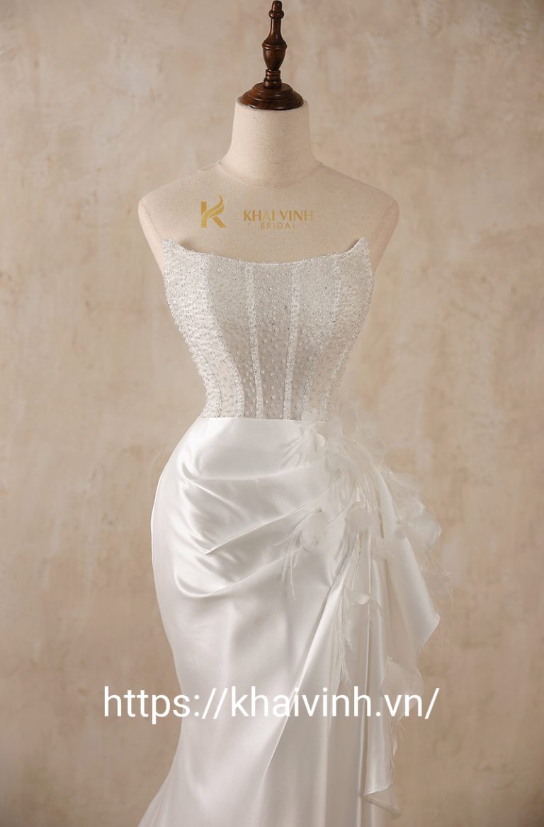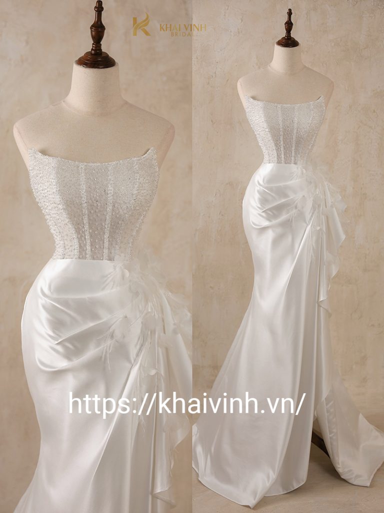 Váy cưới đuôi cá xẻ tà dáng ngắn rất trẻ trung