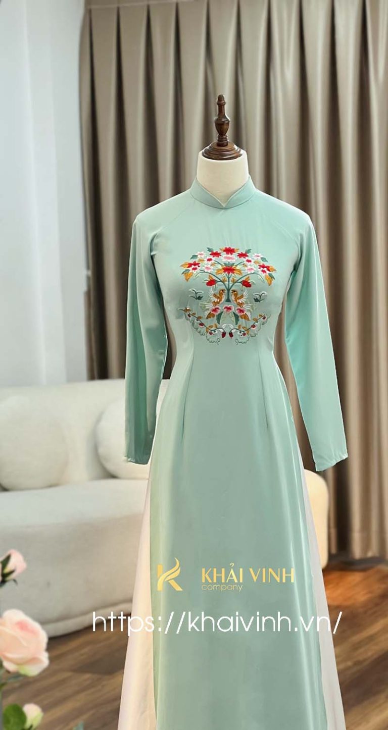 Áo dài cô dâu ăn hỏi màu xanh ngọc bích
