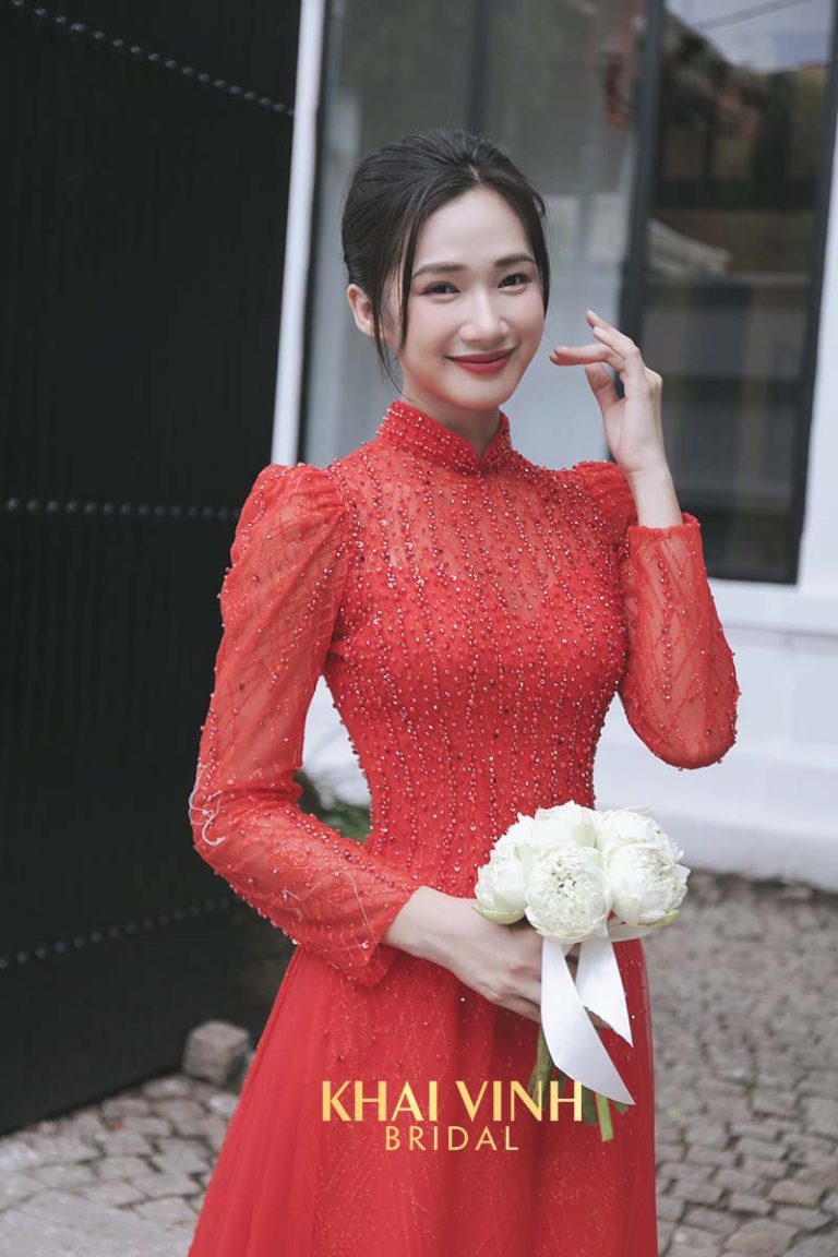 Áo dài cô dâu màu đỏ – Thiết kế hiện đại