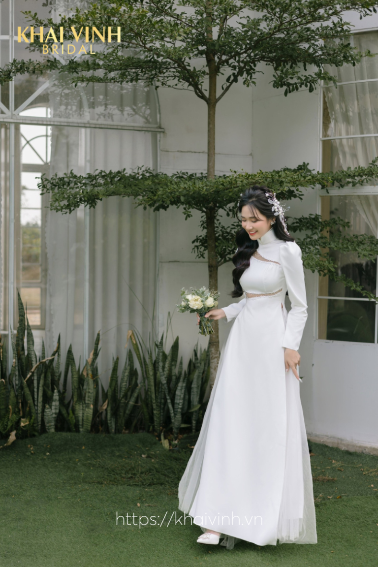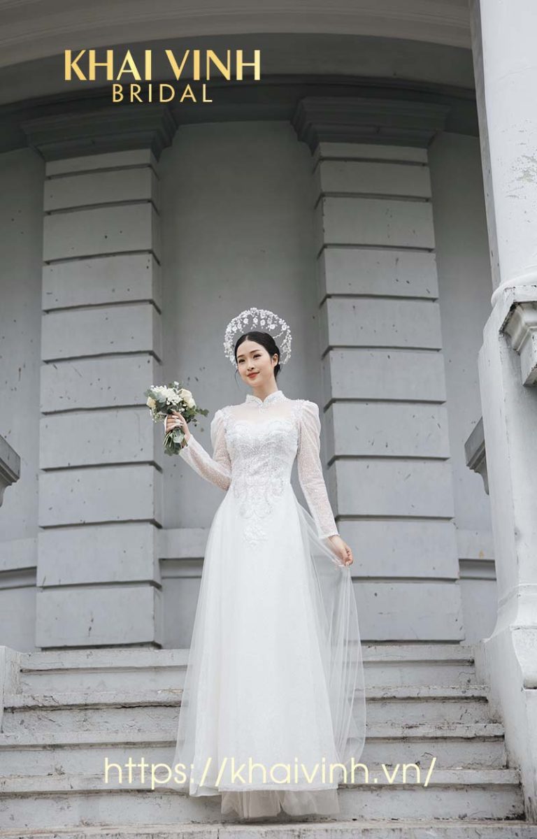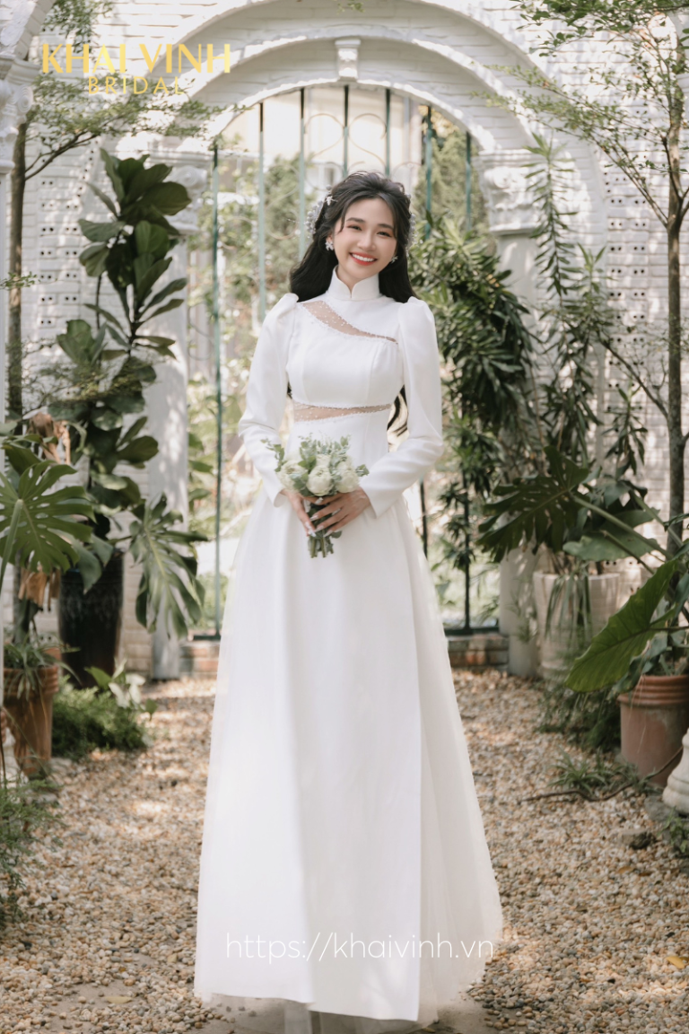 Áo dài cô dâu màu trắng thanh lịch