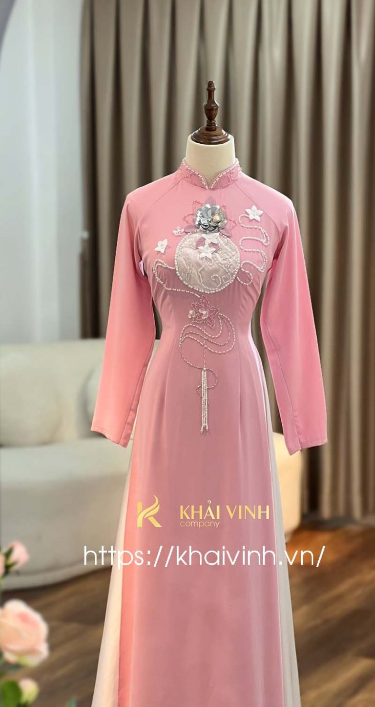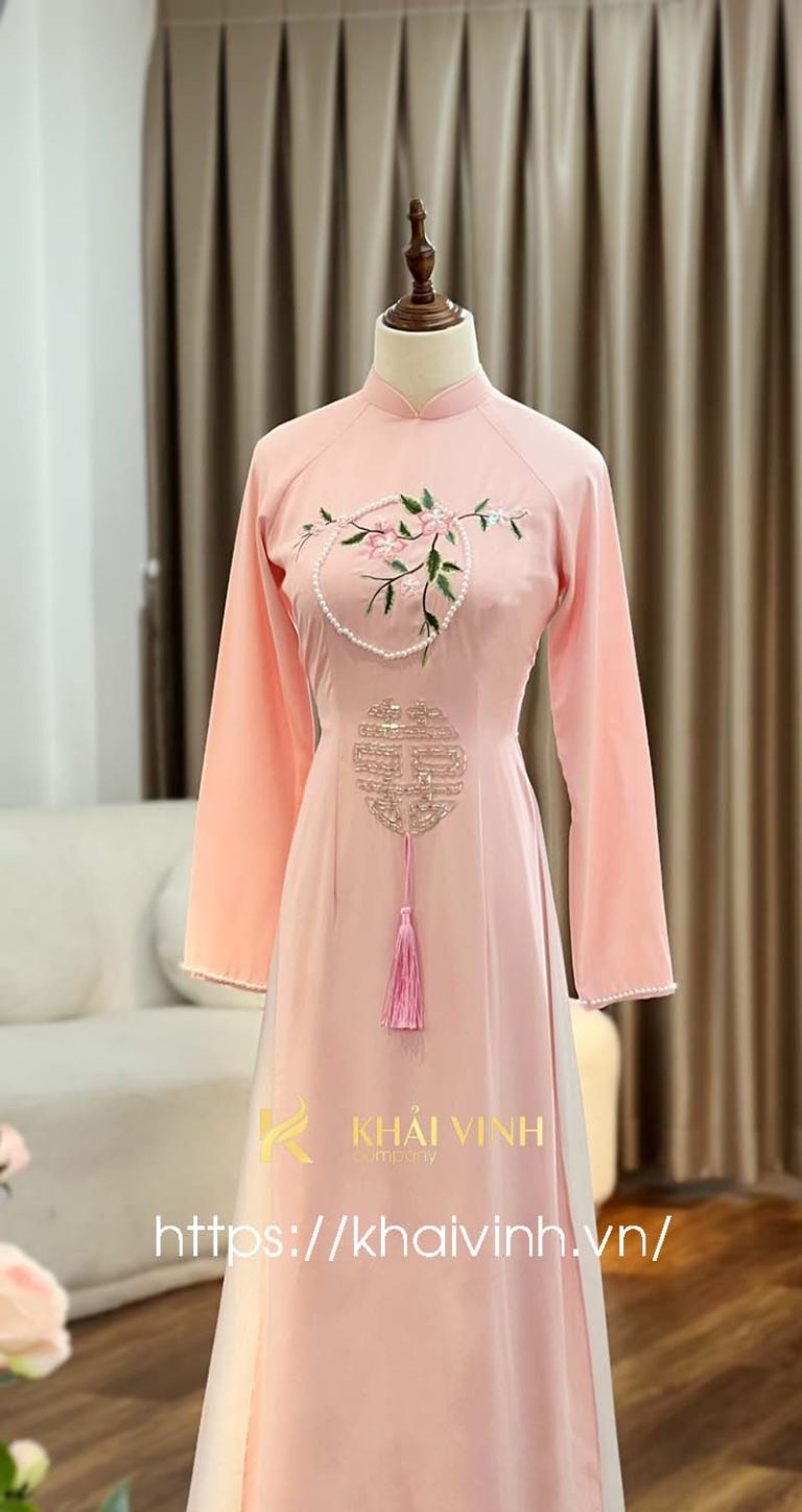 Áo dài cô dâu màu hồng phấn nhẹ nhàng và thanh thoát