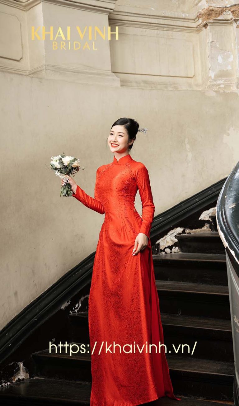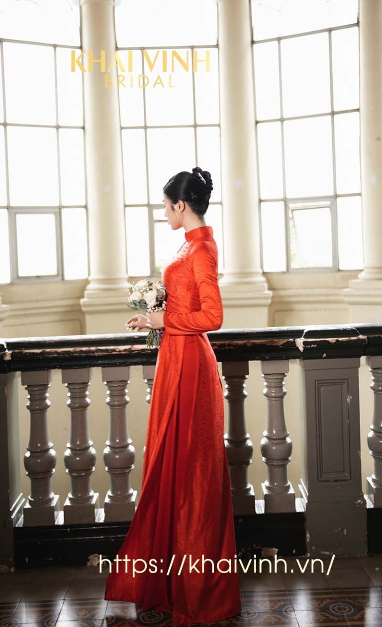 Áo dài cô dâu màu đỏ – Thiết kế hiện đại