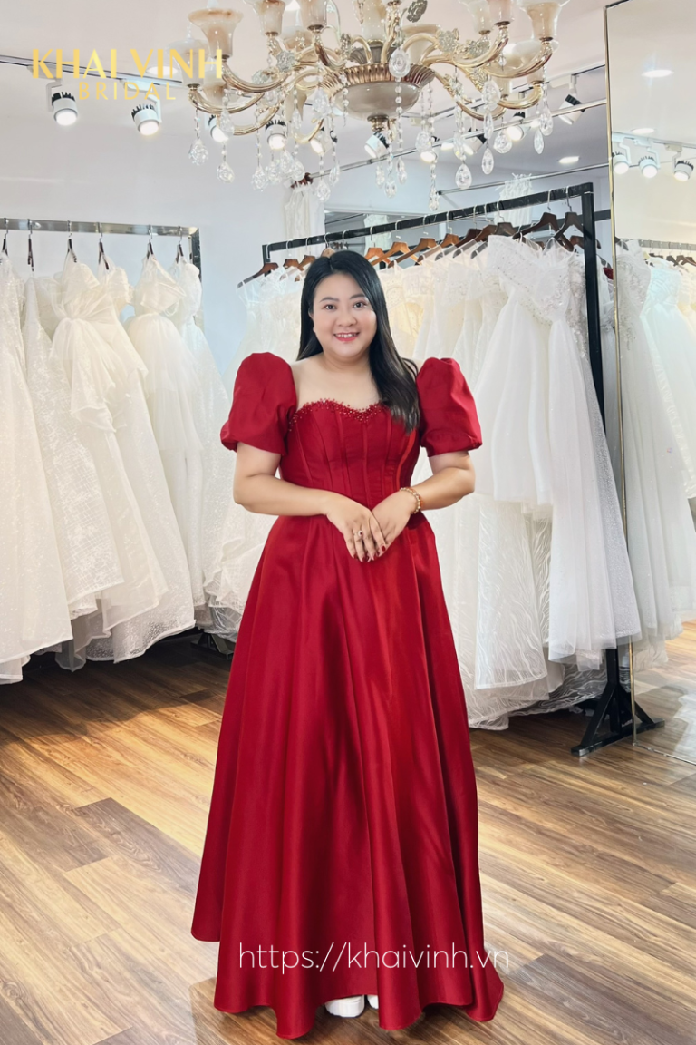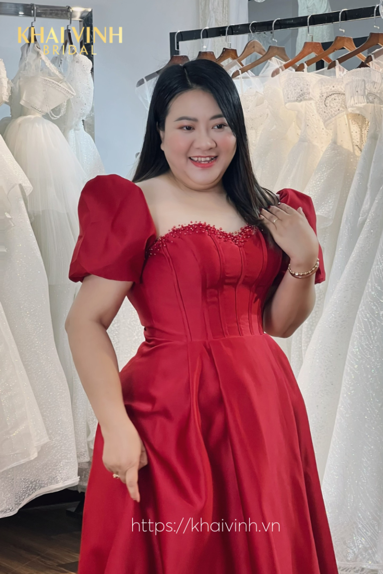 Váy cưới Big size màu đỏ tay phồng sang trọng