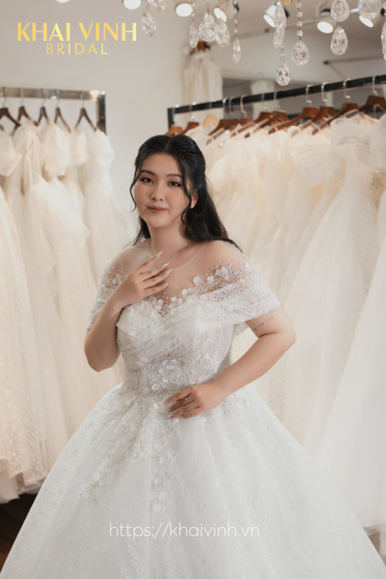 Váy cưới cô dâu Big size thêu hoa nhí dễ thương