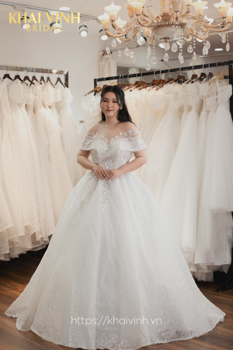 Váy cưới Big size trễ vai tay ngắn sang trọng