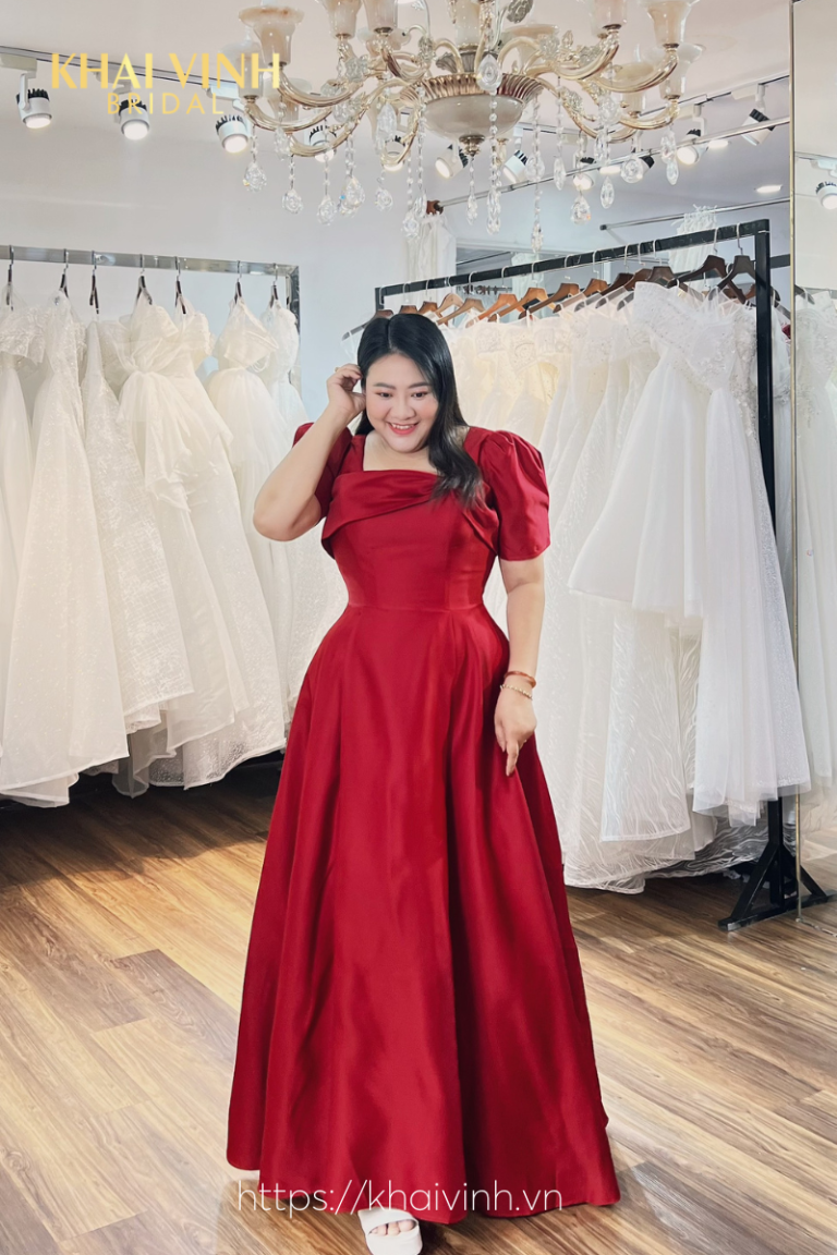 Váy cưới đi bàn Big size màu đỏ tôn da