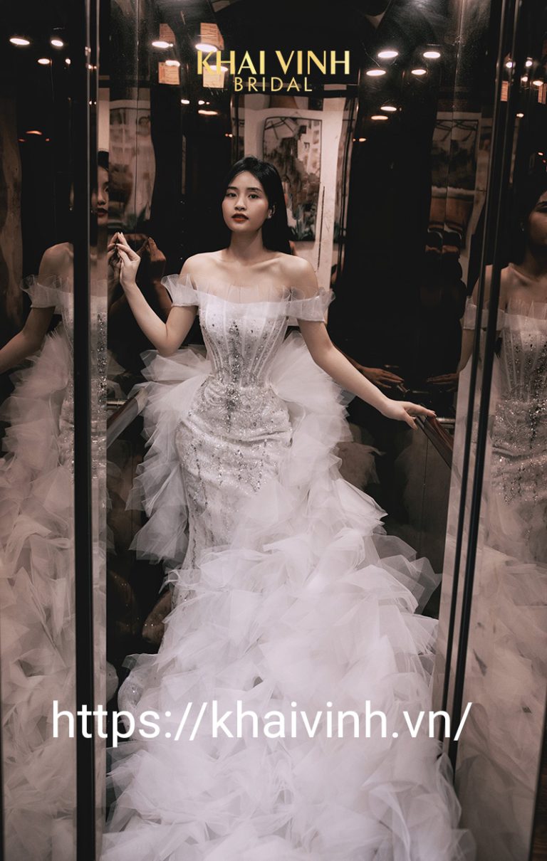 Váy cưới đuôi cá tạo vây rất độc đáo và quyến rũ