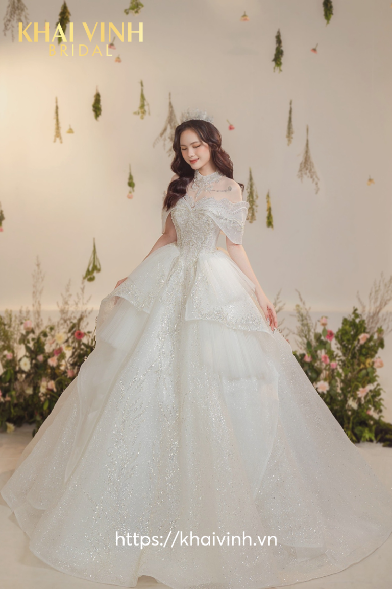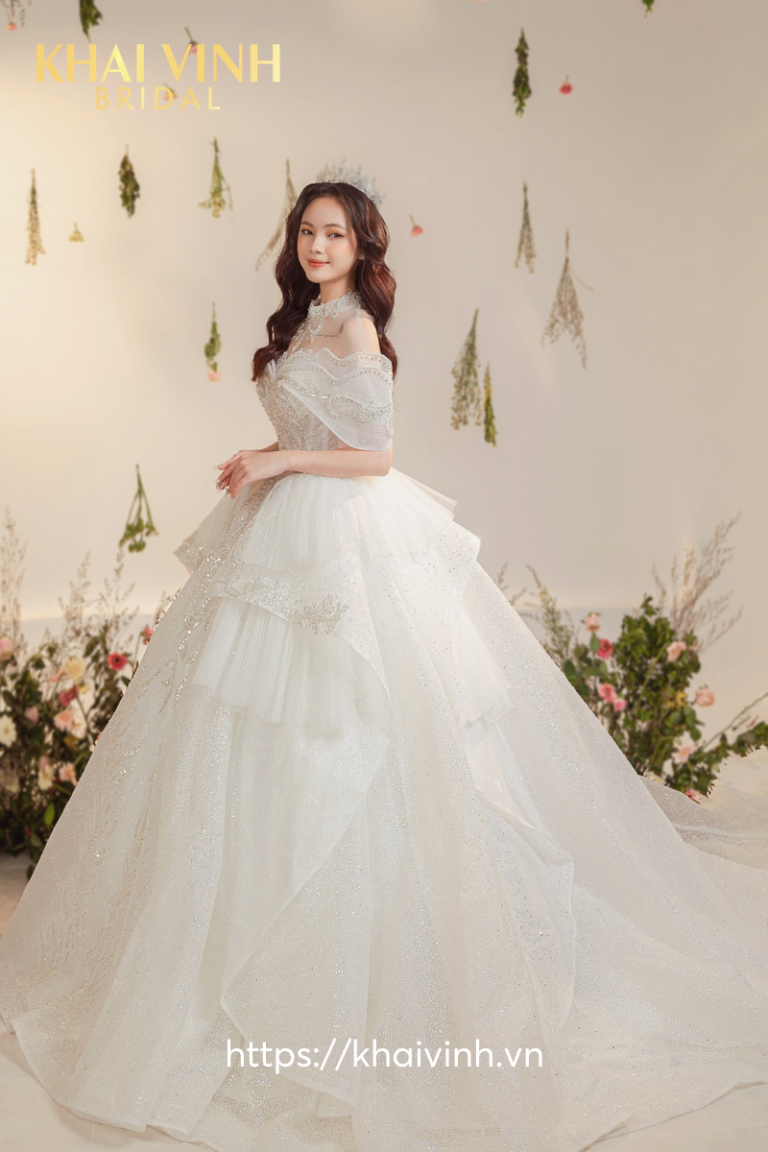 Váy cưới công chúa cổ cao hoàng gia thiết kế riêng