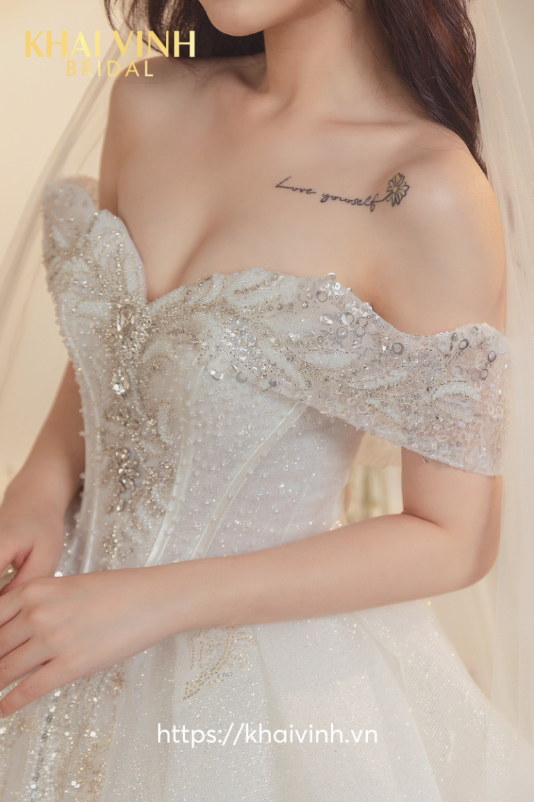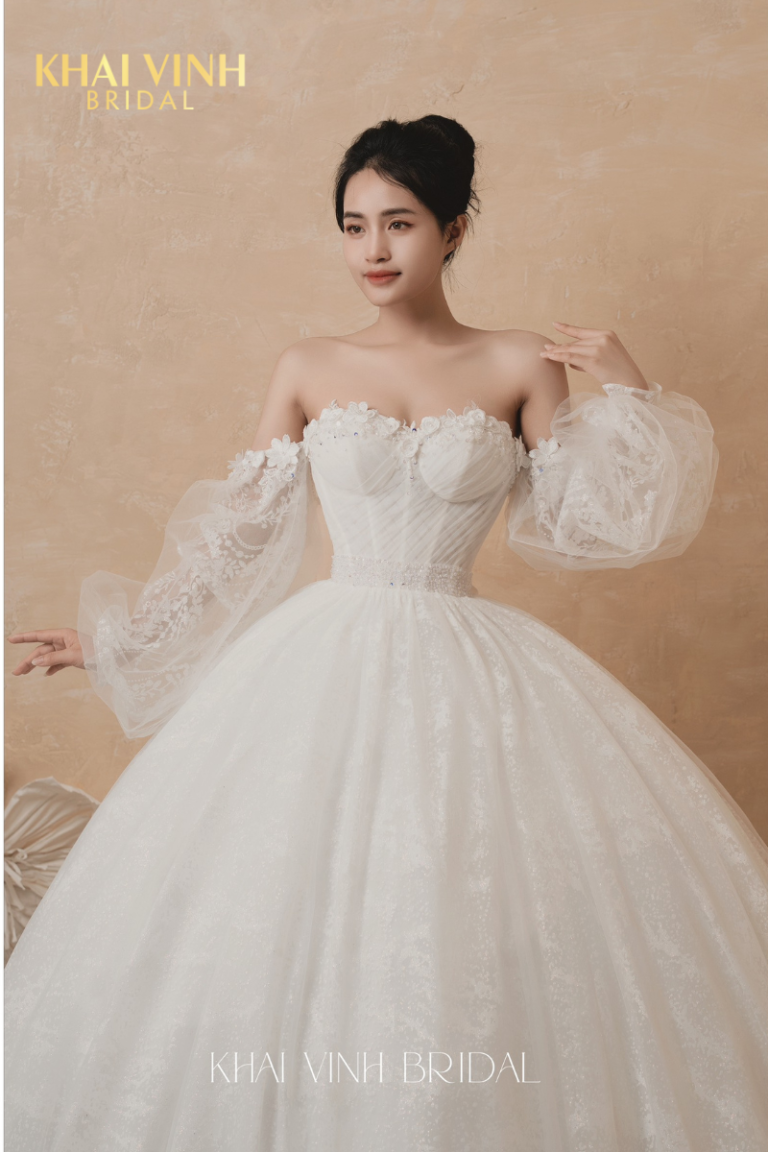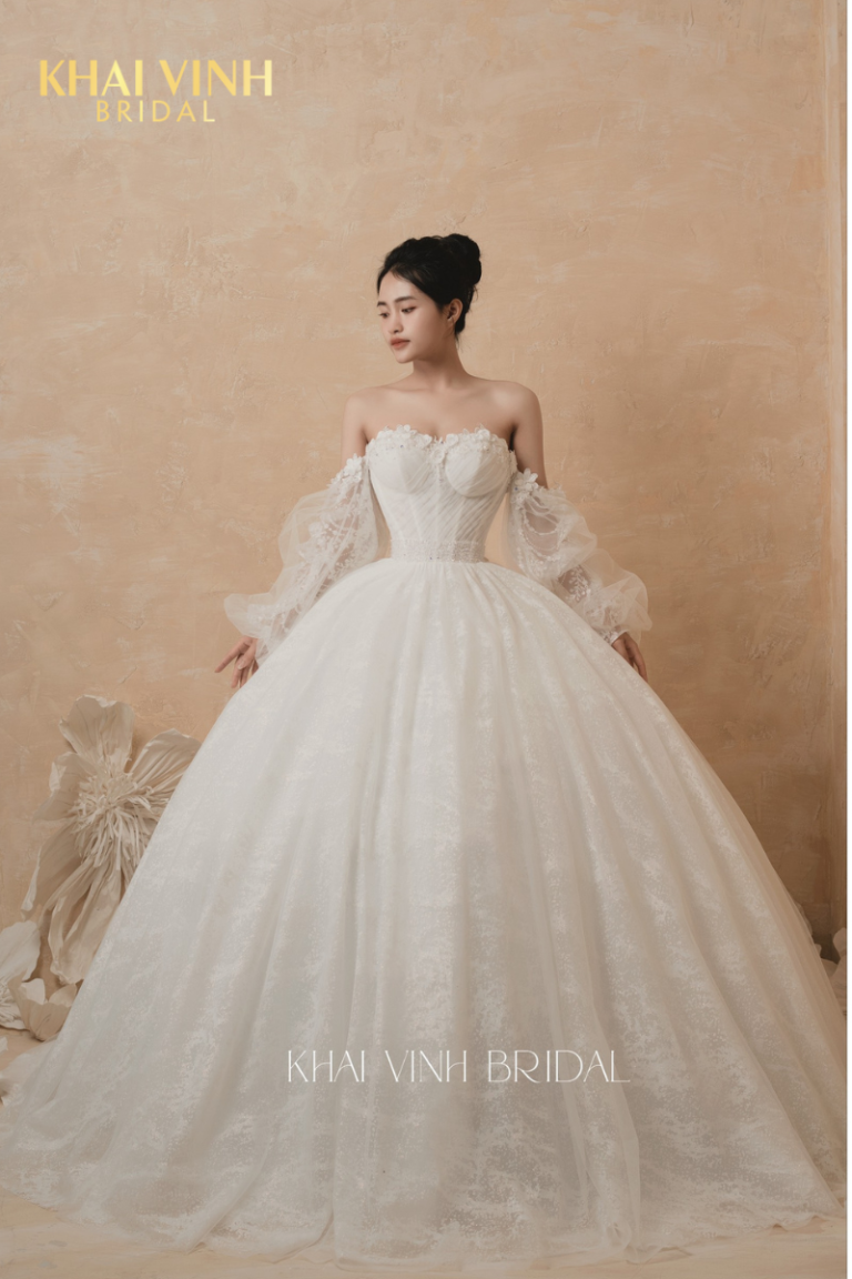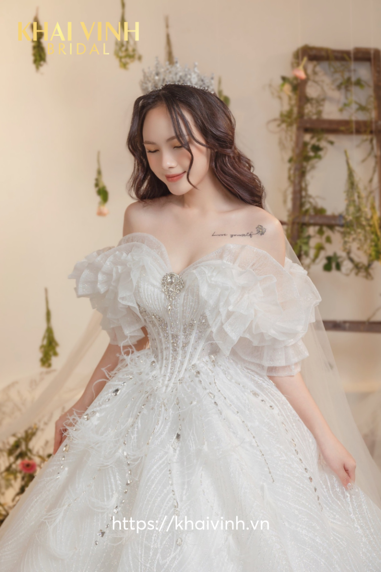 Váy cưới công chúa thiết kế riêng trễ vai hoàng gia